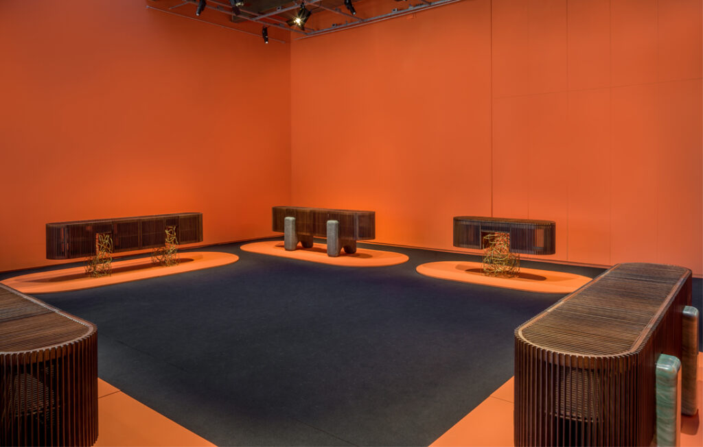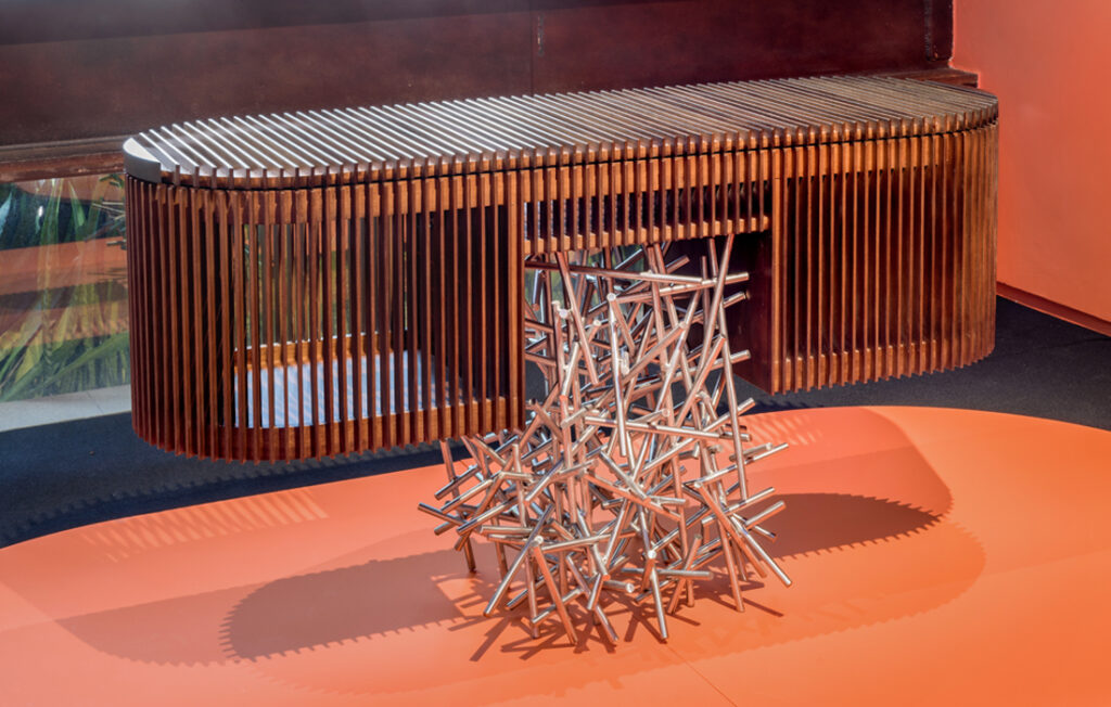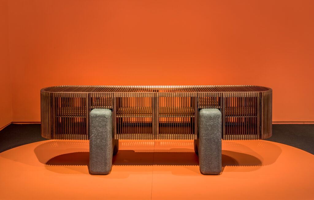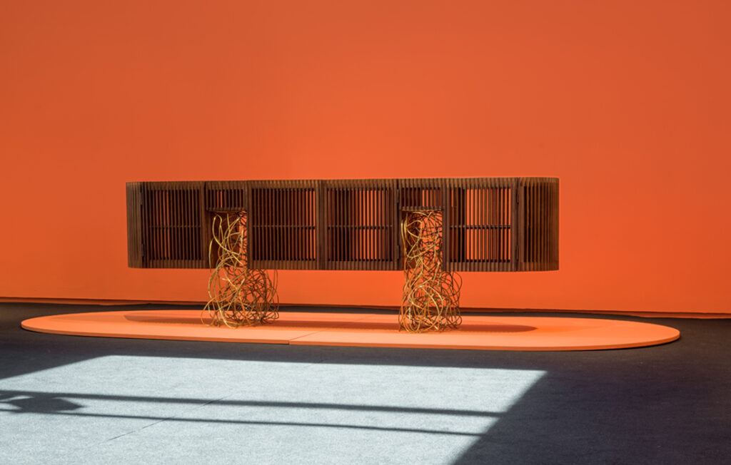 Exposta na SP-Arte 2023, a coleção de buffets Ripas foi projetada pelo Estúdio Campana com matérias-primas que contrastam tanto pela sua composição como pela sua plasticidade, em uma junção da geometria e da liberdade de formas e materiais.
