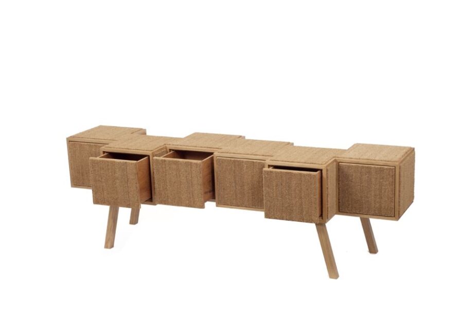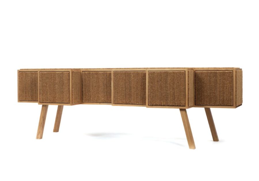 Assim como os demais móveis da coleção homônima, o buffet Capacho, do Estúdio Campana, é feito de madeira com acabamento em sucupira e capacho de fibra de coco. É uma mobília em edição limitada que se adequa com perfeição a salas de estar ou jantar com uma decoração mais rústica ou que valoriza os elementos naturais. O design surpreendente e dinâmico é mais um fator de encantamento nesse buffet próprio para espaços amplos.