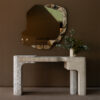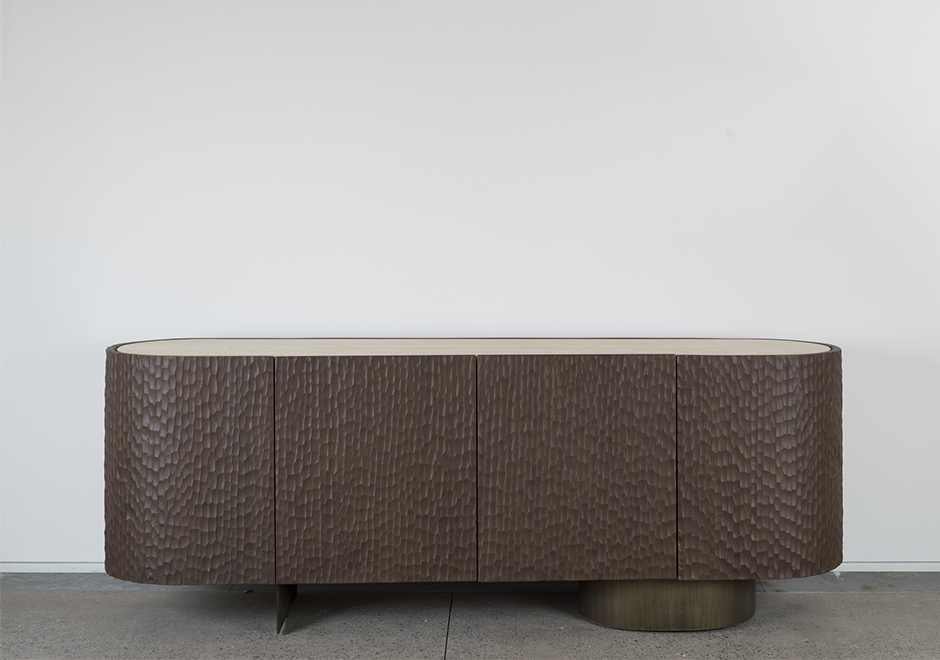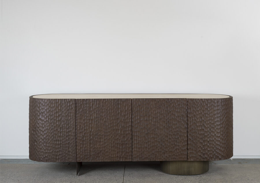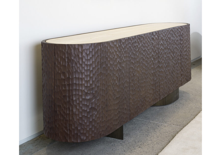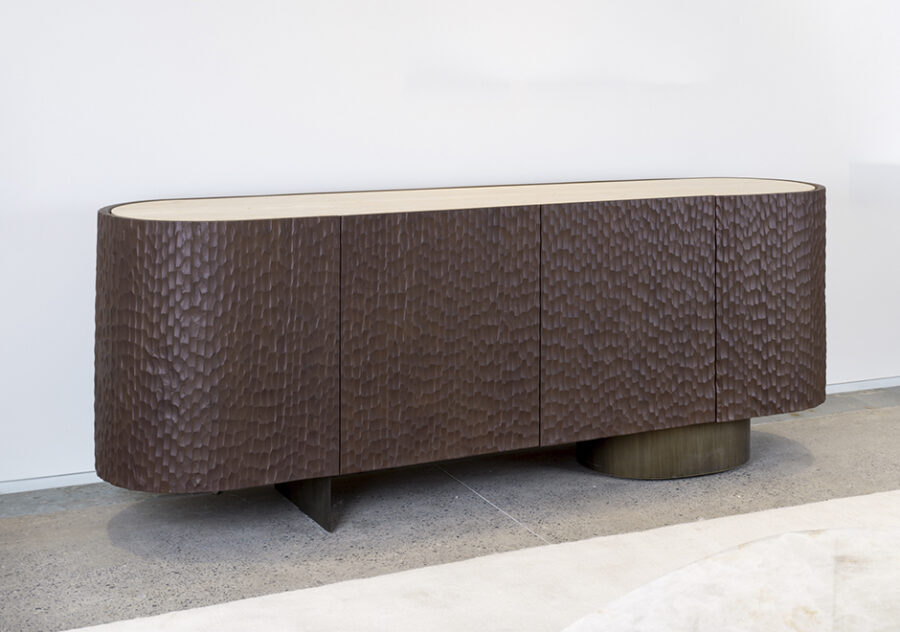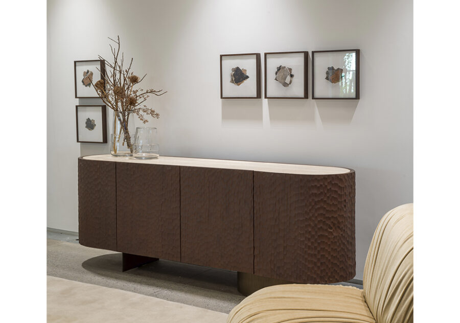 O escritório paulistano Suite Arquitetos foi responsável por criar o aparador Goivado, um móvel funcional, imponente e ideal para compor ambientes com características diversas. Um dos pontos de destaque do Goivado é a presença de madeira maciça Cinamomo tingida, um tampo em mármore, pé reto de aço carbono e um elíptico com chapa metálica. O aparador Goivado possui duas gavetas internas e duas prateleiras nas laterais.