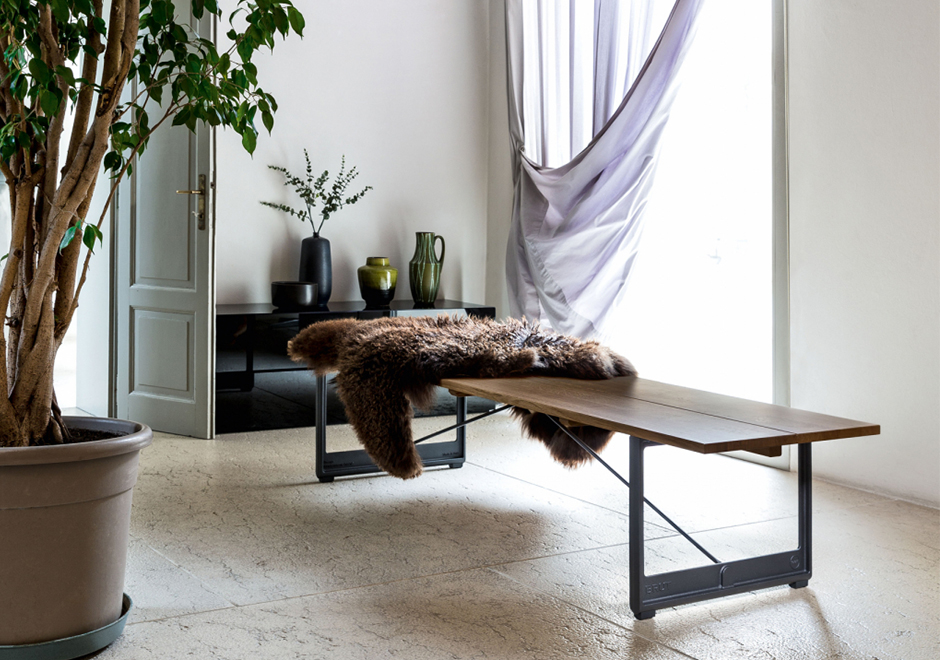 O banco de madeira de alta qualidade Brut, desenhado pelo designer Konstantin Grcic para a Magis Design, é versátil e tem múltiplas funções. Pode servir, por exemplo, como elemento decorativo por si, como assento e como suporte para objetos para ambientes diversos. Sua estrutura é de ferro fundido pintado em poliéster.
