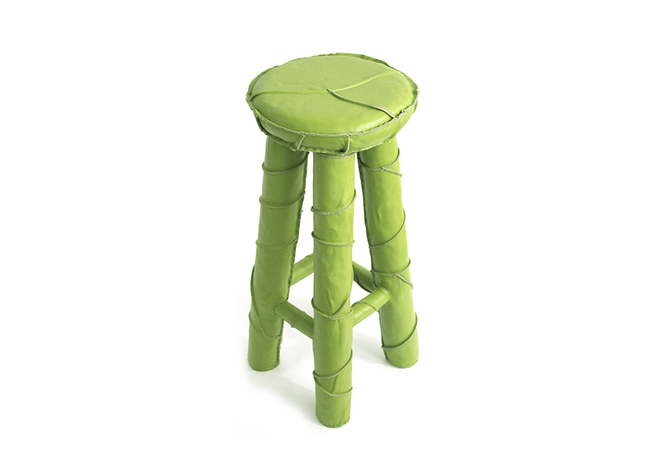 O banco Leather Bar é composto por estrutura de metal revestida em couro.