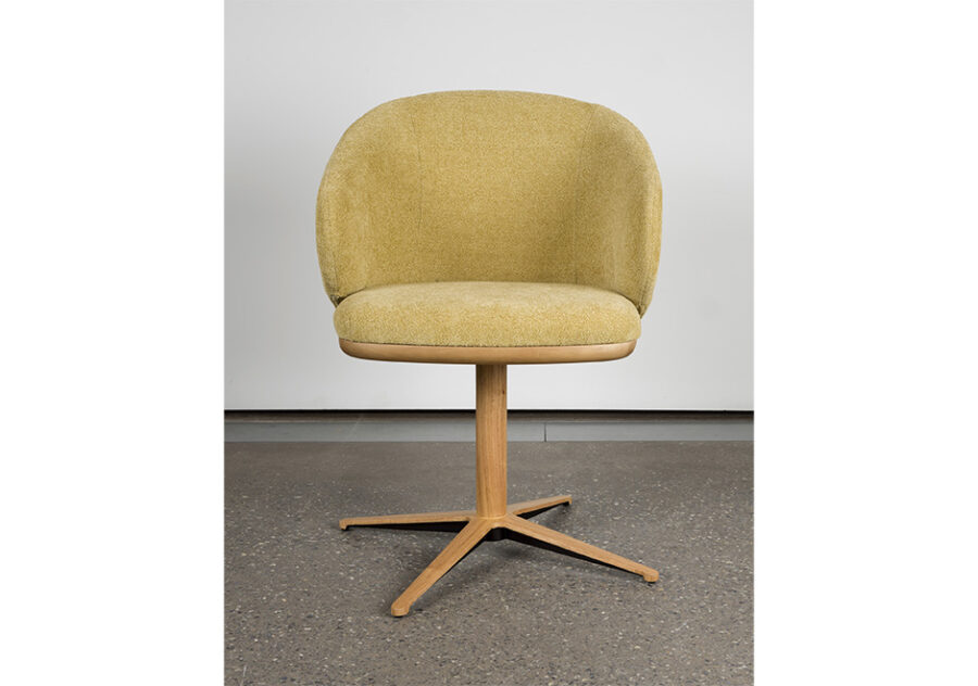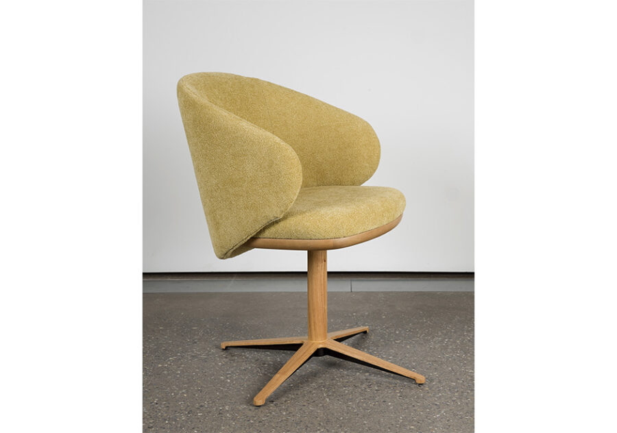 Angelina é uma cadeira design giratória que tem em sua base madeira cinamomo e pés laminados com acabamento Noce. Revestida com um mix de espumas, a Angelina tem estofado em tecido tanto no encosto interno quanto no externo, com algumas opções de tecidos. A base do assento é feita de madeira maciça Tauari, mais uma das características que fazem da Angelina uma peça versátil e apropriada para diversos tipos de ambientes.