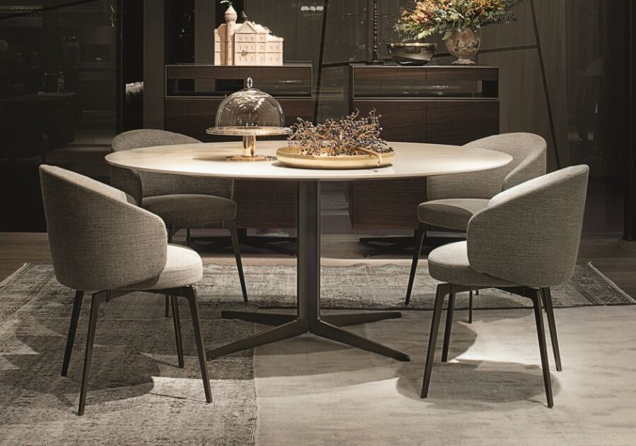 Simples, mas diferenciada o bastante para roubar a cena em qualquer sala de jantar e elevar o ambiente. Assim é a cadeira assinada Bea, desenhada pelo italiano Roberto Lazzeroni para a marca Lema. A peça conta com estrutura de metal e pode ser estofada em tecido (há diversas opções), couro natural ou ecológico.