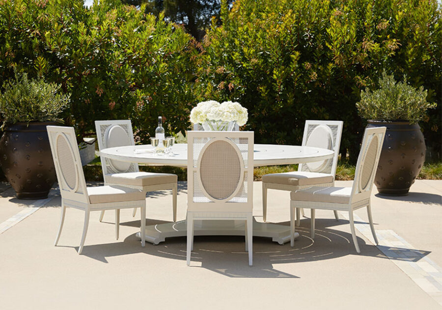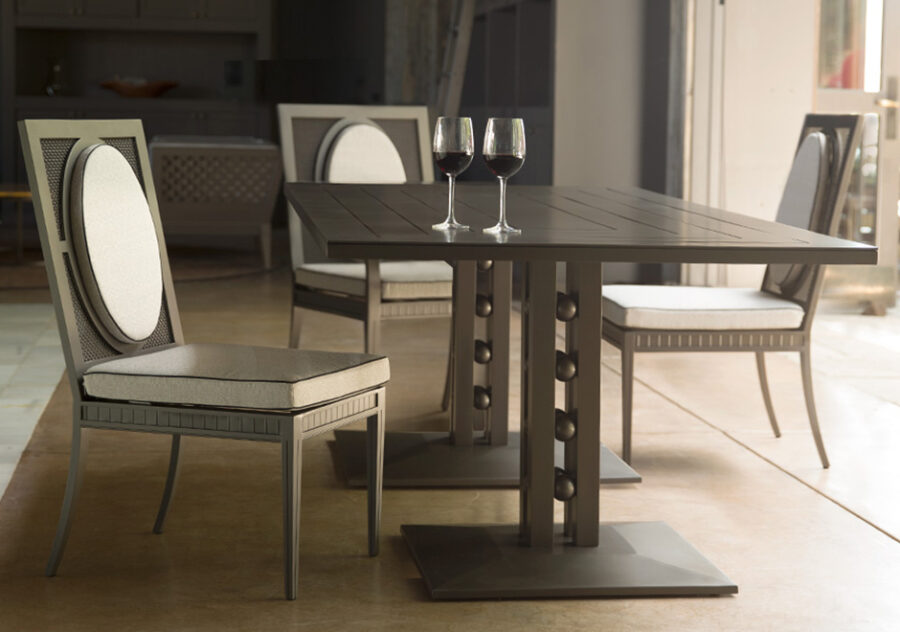 A cadeira para área externa Savannah é feita em alumínio com pintura especial Januscoat. As almofadas são opcionais.