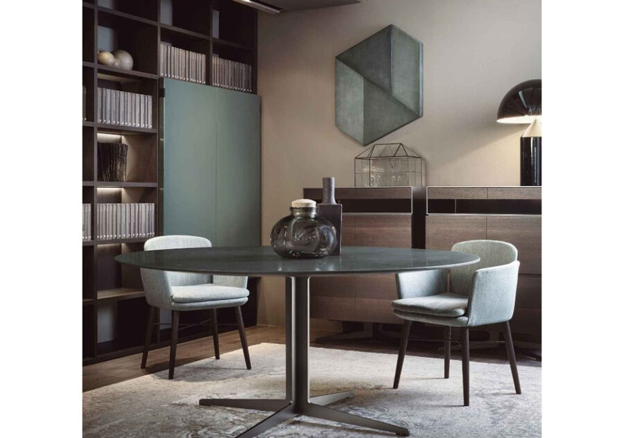A cadeira com braços Tabby, por Gordon Guillaumier para a marca Lema, se encaixa nas mais diversas propostas de decoração para a sala de jantar, percorrendo desde a estética minimalista até a clássica. A estrutura de madeira faz uma combinação harmoniosa com o estofamento de tecido ou couro, o que resulta em uma peça de apelo atemporal.