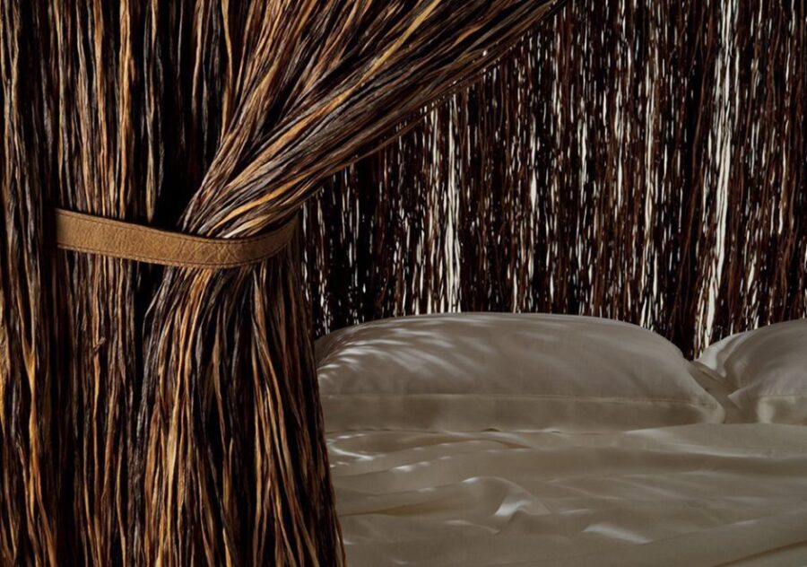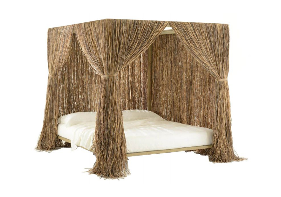 Arrebatadora. Essa é a palavra que melhor descreve a cama Cabana, idealizada por Fernando e Humberto Campana para a marca italiana Edra. Com um design que mescla o dossel convencional e a referência aos povos originários, a cama Cabana está disponível em dois tamanhos e tem estrutura tubular metálica, envernizada e revestida com fios de ráfia sintética antifogo.