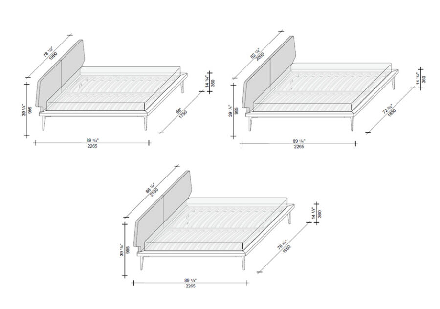 Dream View, cama criada por Roberto Lazzeroni para a marca Lema, tem pés de metal pintado em preto e estrado de madeira. A cabeceira e o estrado são estofados com capas removíveis de tecido ou couro, em variadas opções.
