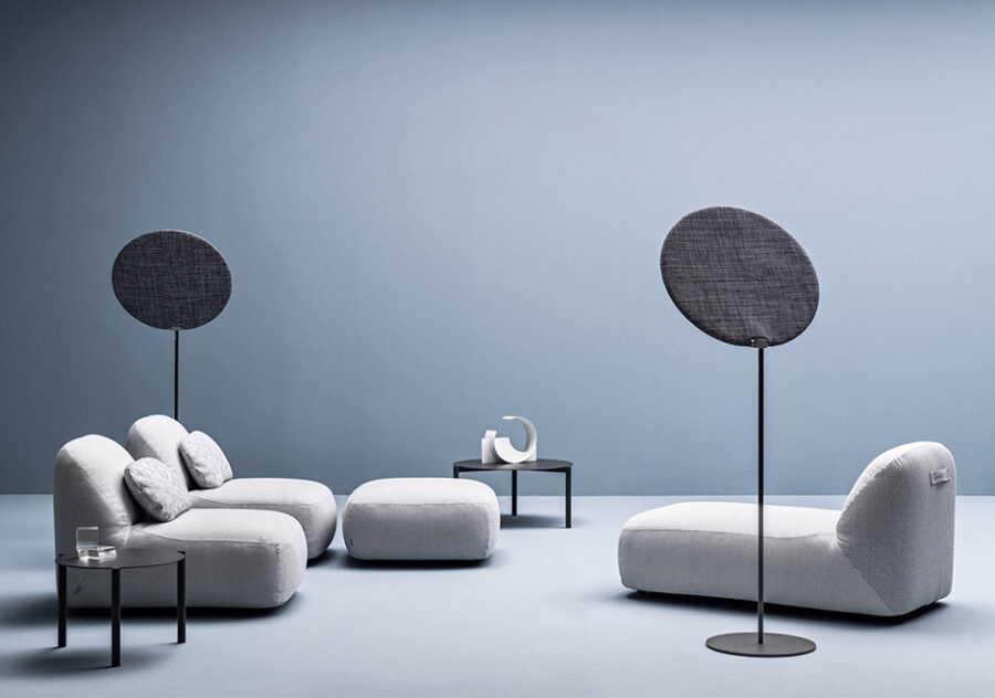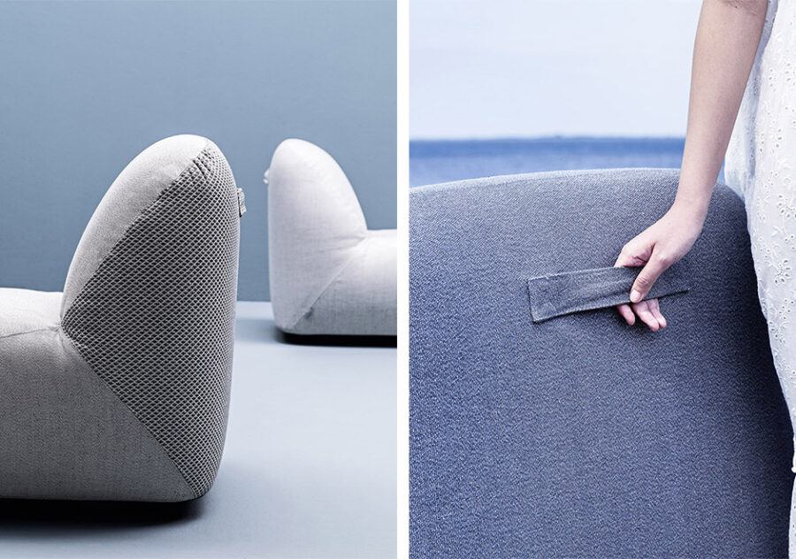 Estrutura em madeira maciça, estofamento em tecido de cânhamo com espuma Dryfeel para uso externo. Capas removíveis, disponíveis em tecidos de diferentes cores que podem ser combinados.