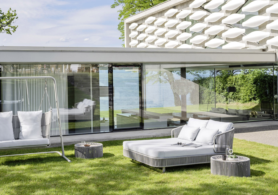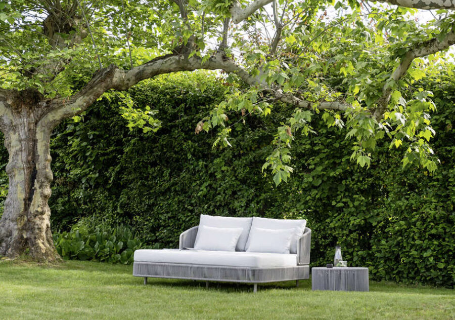 A chaise longue Daybed Tibidabo, dos designers Fabio Calvi and Paolo Brambilla para a marca Varaschin, destaca-se pelas linhas elegantes e requintadas, realçadas pela estrutura de alumínio arrematada em fibras sintéticas trançadas à mão. É um móvel de aparência despojada, sem abrir mão do requinte, ideal para ambientes externos. A coleção Tibidabo é composta por cadeira, poltrona, chaise, sofás e mesas.