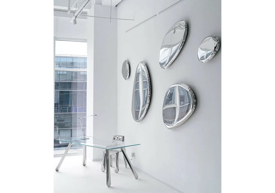 Criado pelo designer polonês Oskar Zieta, do Zieta Studio, o espelho Tafla O se destaca pelas formas irregulares, que dão a ele grande personalidade e presença em qualquer ambiente onde for colocado. O espelho Tafla O é uma excelente escolha para salas de estar e livings com decoração contemporânea. Feito em aço inox, o Tafla O está disponível em vários tamanhos e cores.