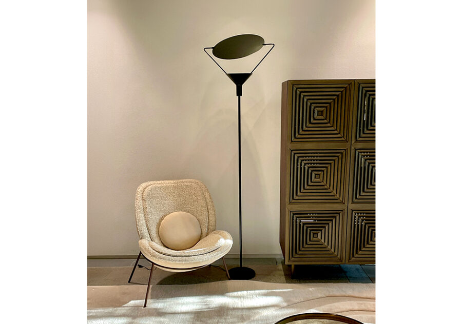 A luminária de chão 4419, um clássico da Dominici dos anos 70, combina tradição e um toque de modernidade com seu disco superior rotacional. Seu design marcante e versátil a torna perfeita para salas de estar, escritórios ou qualquer ambiente que precise de charme e sofisticação.