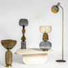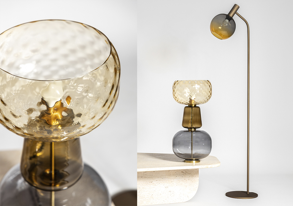 A luminária de mesa Gildas, da marca francesa Les Héritiers, é uma expressão elegante da maestria do design em vidro soprado. Sua composição marcante reúne três cúpulas de vidro — fumê, âmbar escuro e âmbar claro — criando um jogo de volumes, cores e luminosidade que transforma qualquer ambiente com personalidade e sofisticação. Uma luminária escultórica, feita com materiais nobres e acabamento impecável, ideal para quem valoriza design autoral e iluminação que também é arte.