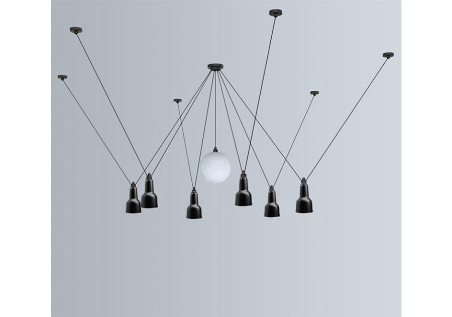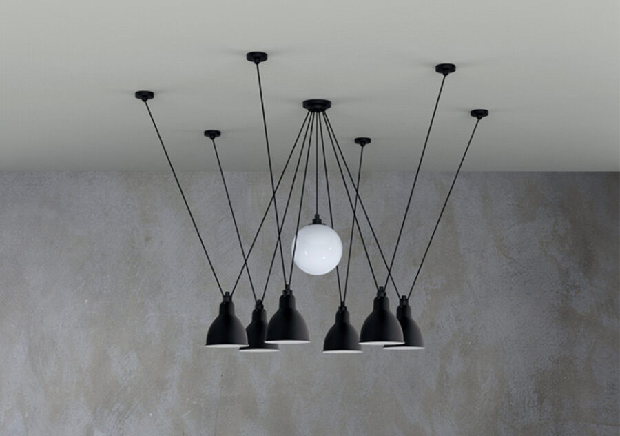 Esta peça notável, nascida da mente inovadora do renomado artista Bernard-Albin Gras, é uma ilustração viva de como o design industrial pode ser transformado em uma obra de arte funcional e esteticamente agradável. A luminária de teto Les Acrobates de Gras 327, da marca DCW Éditions, remete ao movimento gracioso dos acobratas. A peça é composta por um globo central de vidro branco e 6 cúpulas de aço pretas estrategicamente posicionadas.