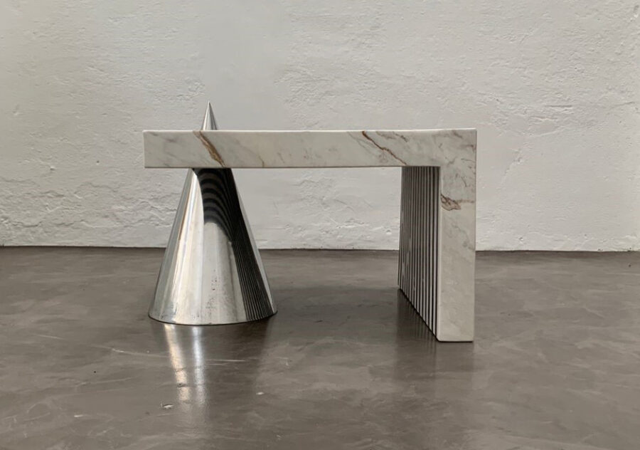 A mesa de apoio Farol traz a assinatura de André Bastos e Pedro Ávila. A dupla optou pelo mármore Travertino Romano, com marchetarias de mármore branco e preto, que lembram um farol naval. Essa é uma peça sofisticada, que possui um tampo em mármore preto All Saints e base cônica em alumínio polido. Elegante e moderna, a mesa de apoio Farol traz um toque de luxo e exclusividade a qualquer ambiente.