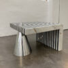 Criada pelo designer Fernando Akasaka, a mesa de apoio Ronnie demonstra a criatividade do profissional. Sua estrutura alongada tem curvas irregulares que transmitem uma ideia de organicidade e arte. Os materiais escolhidos por Akasaka foram o bronze polido, que compõe a estrutura da mesa, e o mármore Blue Mare, que dá o brilho necessário ao tampo da Ronnie. Esse é um móvel que engrandece o ambiente onde se insere e pode se encaixar em diferentes contextos.