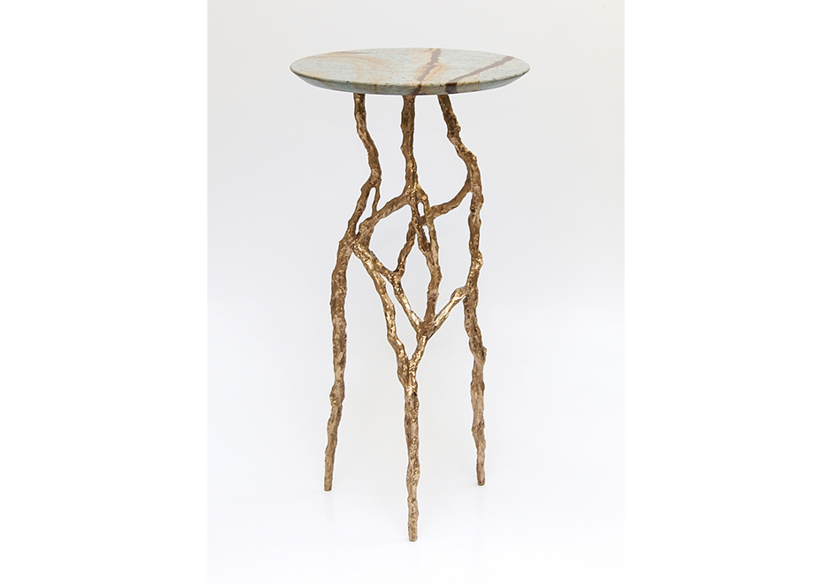 Criada pelo designer Fernando Akasaka, a mesa de apoio Ronnie demonstra a criatividade do profissional. Sua estrutura alongada tem curvas irregulares que transmitem uma ideia de organicidade e arte. Os materiais escolhidos por Akasaka foram o bronze polido, que compõe a estrutura da mesa, e o mármore Blue Mare, que dá o brilho necessário ao tampo da Ronnie. Esse é um móvel que engrandece o ambiente onde se insere e pode se encaixar em diferentes contextos.