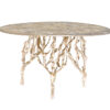 A mesa Alfi criada por Tufi Mousse para a Firma Casa tem tampo e três pés em pedra natural. A base de sustentação do tampo e as hastes internas dos pés são em aço inoxidável polido, formando um móvel belo e atemporal.