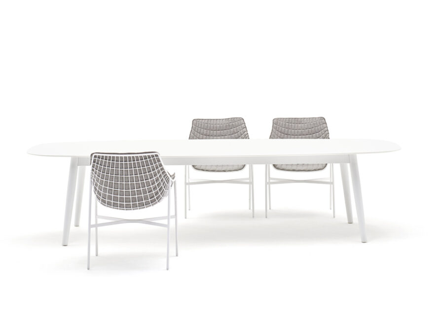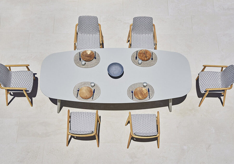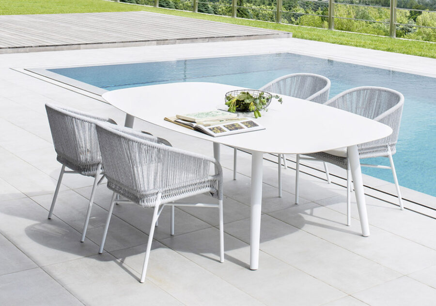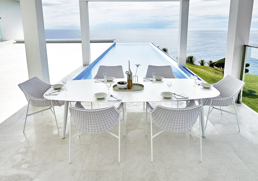 Ideal para compartilhar deliciosas refeições ao ar livre entre pessoas queridas, a mesa de jantar Ellisse, da marca Varaschin, se destaca entre as opções outdoor do portfólio da Firma Casa. Disponível em dois comprimentos e alturas, ela compõe com estilo e praticidade a decoração de jardins e decks com sua estrutura em alumínio pintado de alta durabilidade.