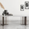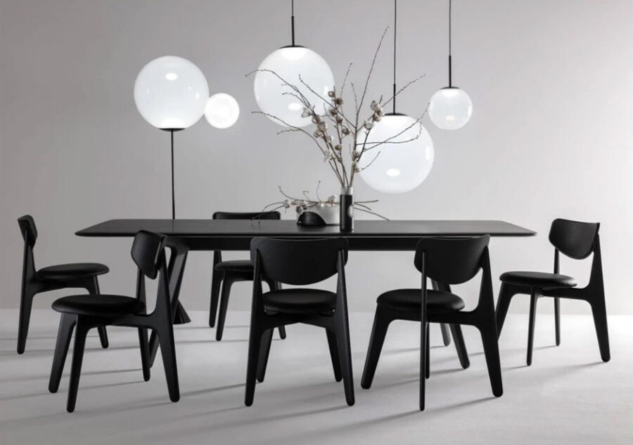 Básica e minimalista, mas com uma proposta que não abre mão da personalidade, a mesa de jantar Slab, da marca Tom Dixon, é feita com madeira de alta qualidade. Essa peça é perfeita para acomodar com conforto e elegância e servir de cenário para a construção de lembranças inesquecíveis. A coleção possui também mesa de escritório, cadeiras e bancos.