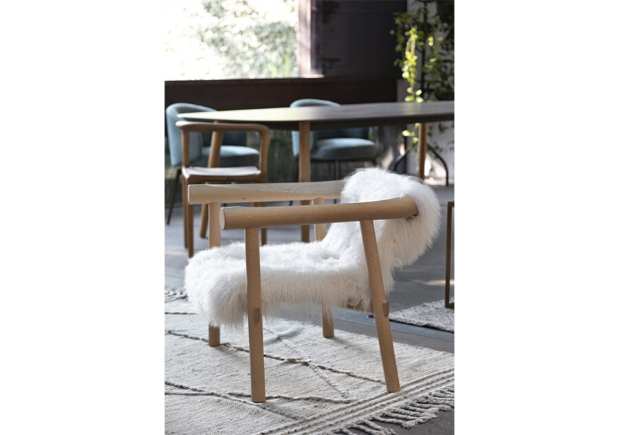 A poltrona Altay, assinada pela designer espanhola Patricia Urquiola para a marca francesa Coedition, exala uma atmosfera de conforto. Especialmente nos dias de frio, ela proporciona um incrível aconchego por conta do seu assento coberto com pele de cabra da Mongólia, nas cores preto ou branco.
