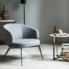 A poltrona Chiara tem base de aço cromado polido, estrutura de metal revestida com espuma de poliuretano flexível Gellyfoam® e estofado em tecido ou couro. O móvel pode ter a companhia de um pufe para proporcionar ainda mais conforto.