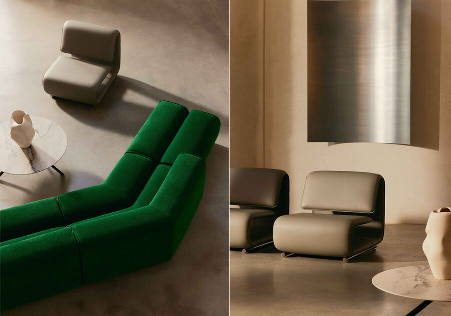 Assinada por Francesco Rota para a Desalto, a coleção Clip traduz a essência do design em formas leves e precisas. Com estrutura metálica interna e volumes estofados que parecem flutuar no espaço, reúne chaise longue, poltrona e pufe em uma proposta contemporânea, confortável e visualmente marcante. Uma linha versátil, pensada para diferentes ambientes.