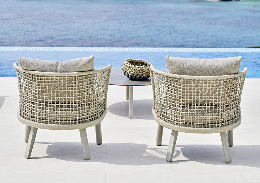 Os momentos de relaxamento e convívio com os amigos sob a luz do sol ganham charme com a poltrona lounge Emma Lounge, da designer Monica Armani para a marca Varaschin. Bonita, prática e resistente, ela tem estrutura de alumínio com pintura eletrostática em várias opções de cores, que podem ser combinadas com pés de alumínio ou madeira e assentos e almofadas removíveis em diversas opções de tecido. A coleção Emma é composta por cadeira, banco, pufe, chaise, sofás e mesas.