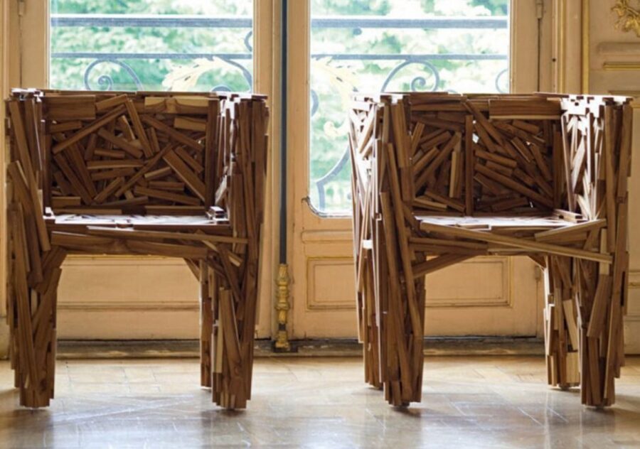 Uma das peças mais icônicas dos irmãos Campana, a poltrona design Favela tem inspiração na cidade de São Paulo e traduz concretamente o inconfundível trabalho de vanguarda da dupla. É uma peça feita à mão com pequenas ripas de pinho ou teca, pregadas e coladas ao acaso; ou seja, cada cadeira é unica para consolidar de forma singular o bom gosto no décor da sala de estar ou do escritório.