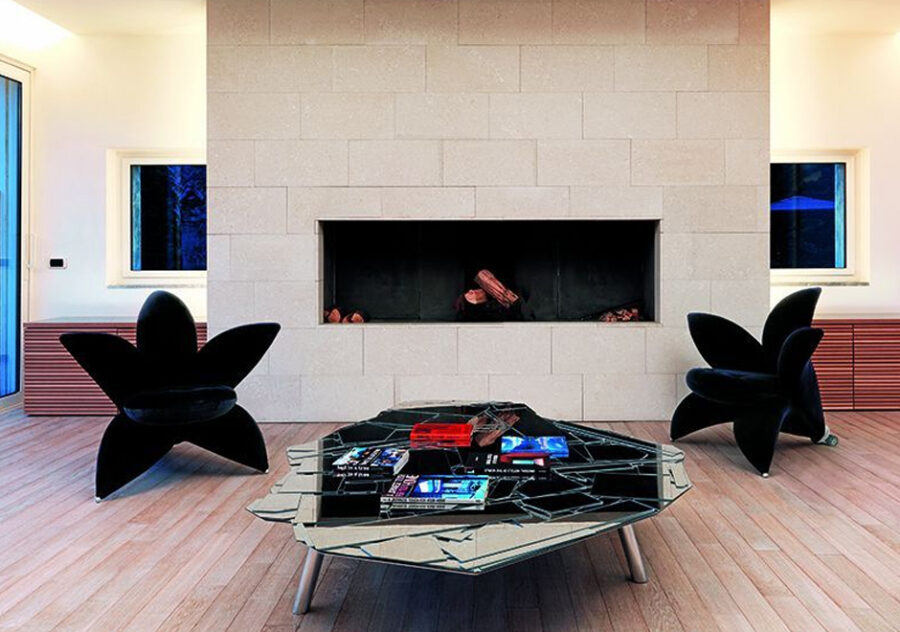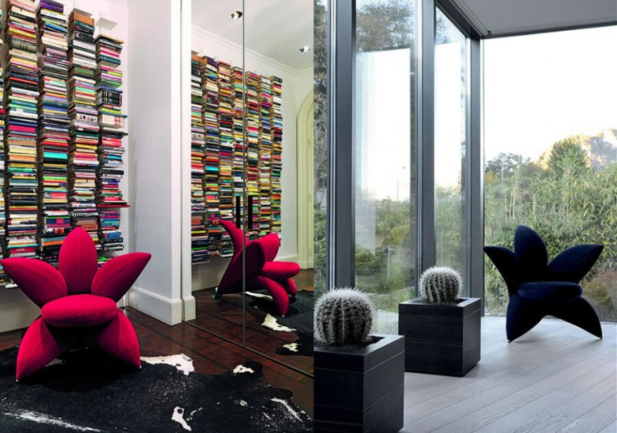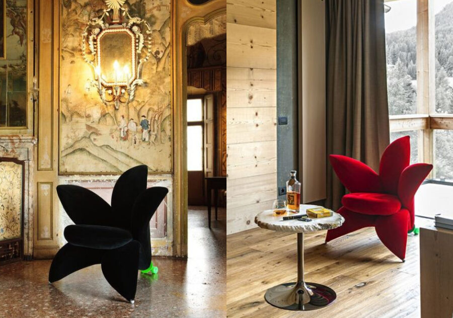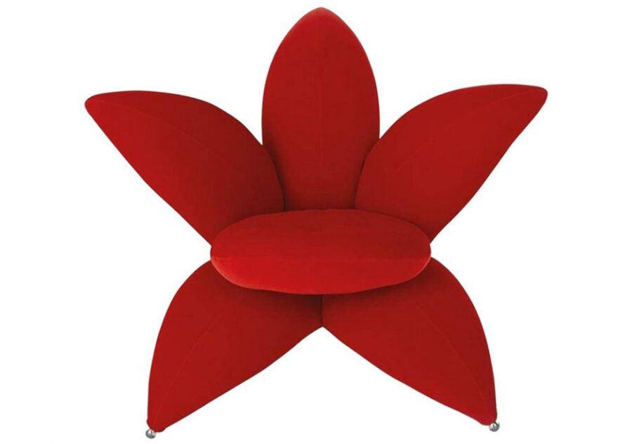 O japonês Masanori Umeda costuma incorporar motivos florais por meio de elementos de design tradicional em suas peças, que costumam atrair um público avesso ao tradicional. A poltrona assinada Getsuen, criada por Umeda para a marca Edra, tem formato de lírio e uma aparência delicada que camufla uma sólida estrutura de aço modelada à mão. A superfície aveludada do estofamento imita a sensação de pétalas, ampliando a experiência de conforto.