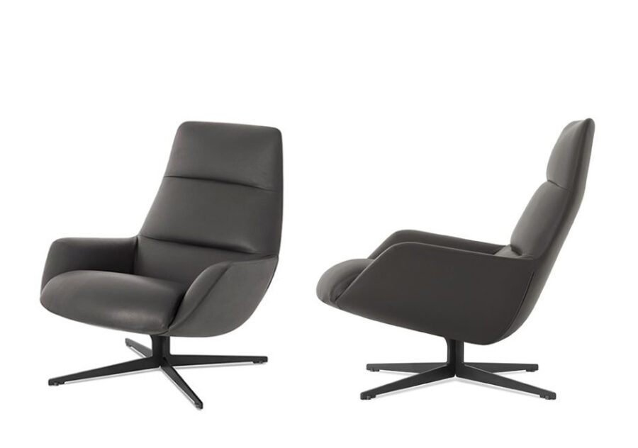 Sóbria e sofisticada, a poltrona design Lady Jane, por Christophe Pillet para a marca Lema, também se destaca pela versatilidade. Ela dá ares convidativos a qualquer ambiente por funcionar bem na decoração do escritório à sala. Com estrutura de metal e mecanismo que permite a rotação do assento em 360°, está disponível em tecido ou couro e conta ainda com um pufe opcional.