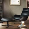 A poltrona design Lennox de Gordon Guillaumier para a marca Lema é perfeita para passar o tempo lendo ou ouvindo música favorita, seja qual espaço ocupar. Com um perfil retrô, a inspiração da base é uma corola aberta, suspensa no ar sobre uma estrutura elegante feita de metal na cor bronze. O resultado é uma poltrona elegante e discreta que se harmoniza com ambientes minimalistas e com um viés escandinavo. Há um pufe opcional no mesmo estilo.