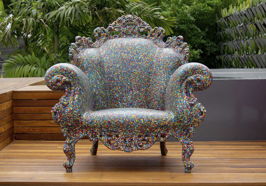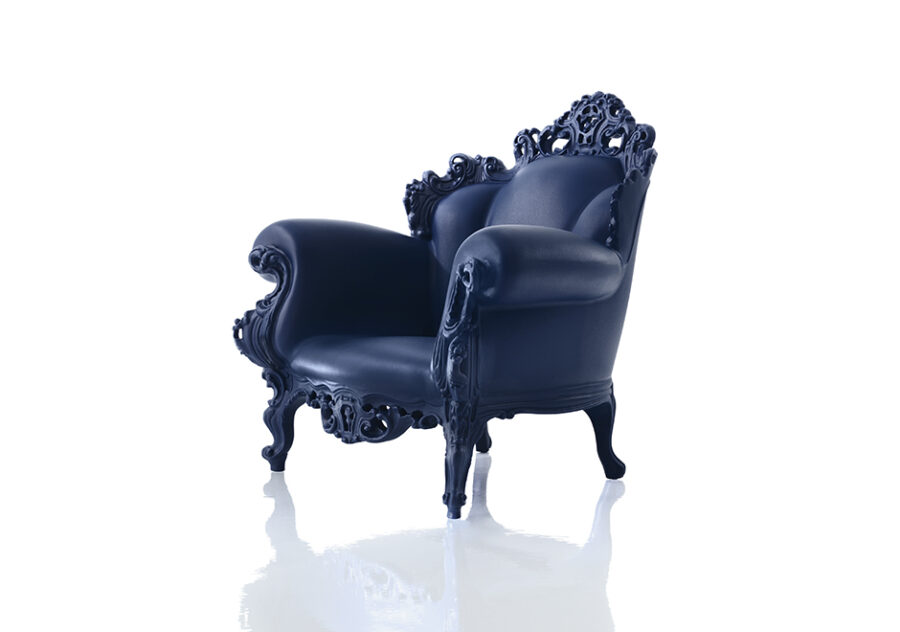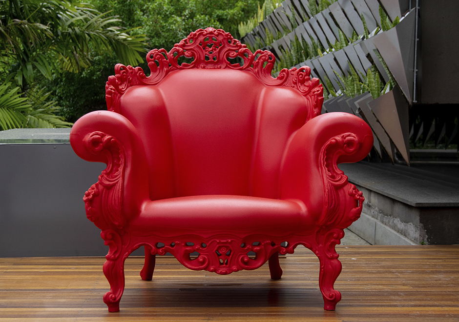 Irreverente e sob medida para decorações despojadas, a poltrona outdoor Magis Proust é a versão em polietileno moldado da icônica “”Poltrona di Proust””, criada pelo designer Alessandro Mendini para o Studio Alchimia em 1978. Esse modelo de 2011 da Magis Design transforma o estilo barroco e romântico original em um conceito industrial, atemporal e único.