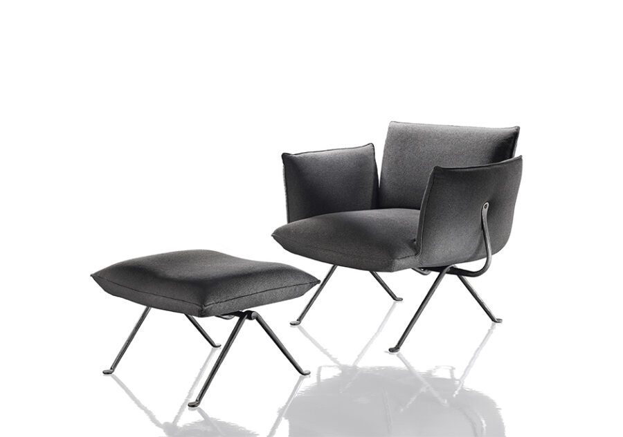 De Ronan e Erwan Bouroullec, a poltrona assinada Officina é um exemplo da estética minimalista da marca Magis Design e se adapta com equilíbrio às ideias de decoração com estética industrial. A peça pode oferecer um contraste cativante em diferentes ambientações. Versátil e funcional, a poltrona Officina vai da sala de estar ao escritório sem perder o refinamento graças à combinação do aço com couro ou tecido. Pufe opcional.