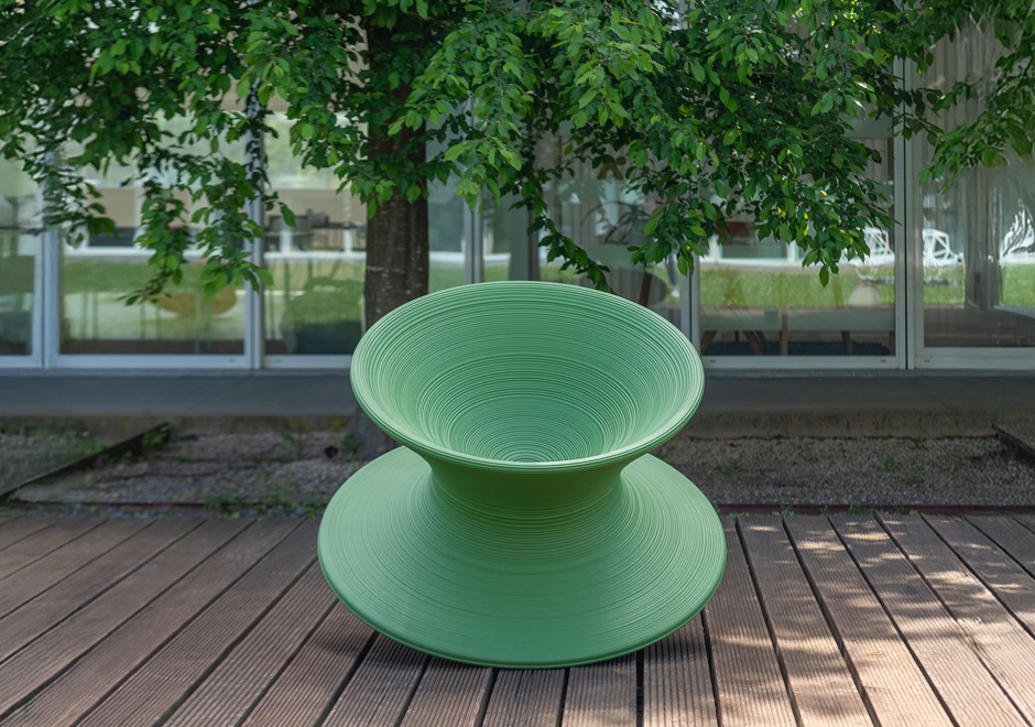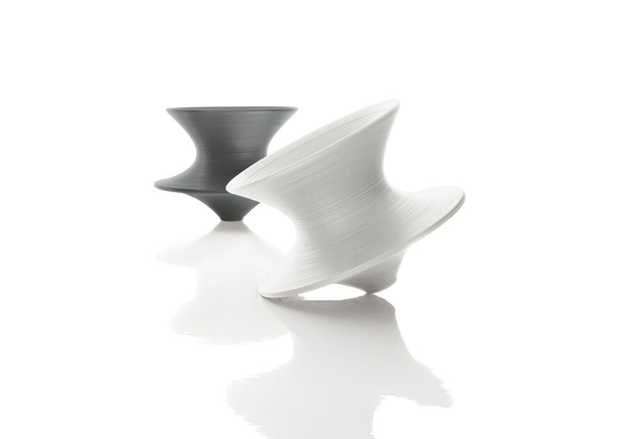 Criada por Thomas Heatherwick para a marca Magis Design, a Spun é uma poltrona de design inovador, divertido, lúdico e que consiste em um verdadeiro desafio à gravidade. É uma peça que foge aos padrões tradicionais e perfeita para causar aquele impacto em áreas externas, já que sua estrutura é de polietileno.