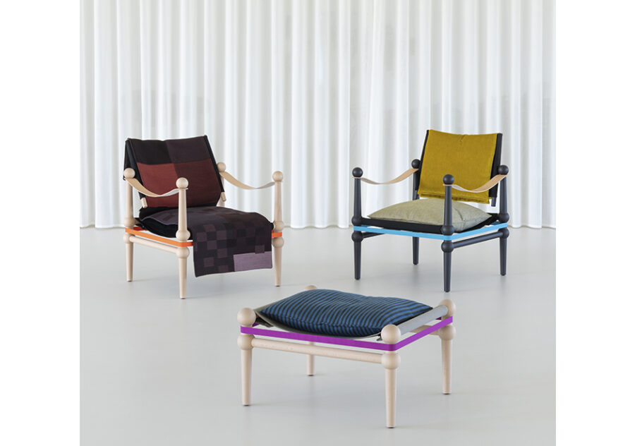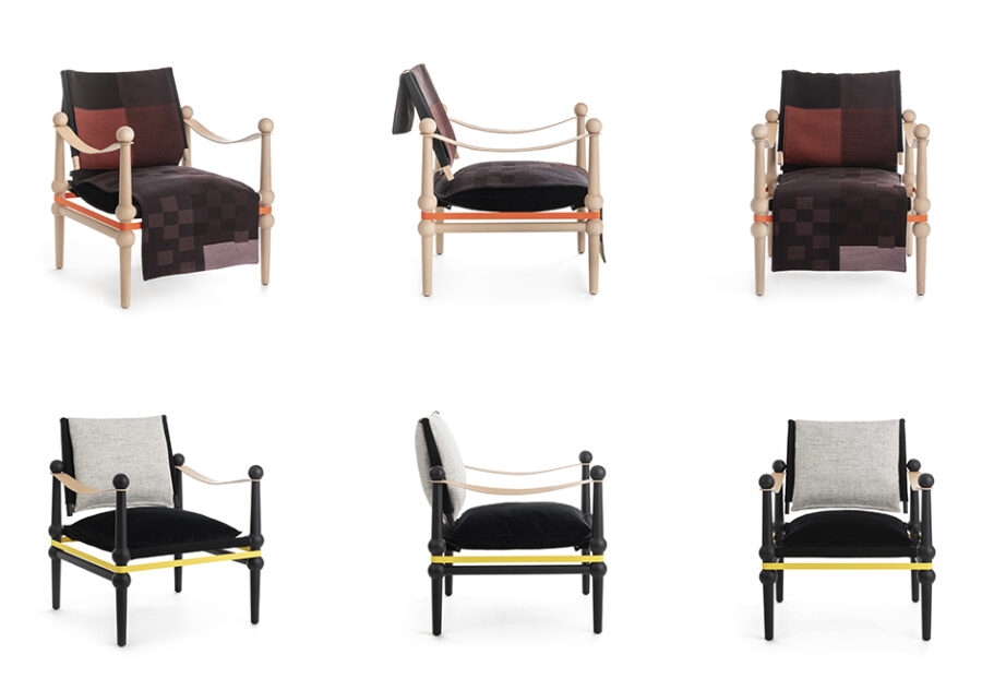 Criada pelo designer alemão Konstantin Grcic para a Magis Design, a poltrona Twain tem um visual de grande impacto para transformar ambientes. Sua estrutura é feita em faia maciça natural ou tingida de preto. Os apoios de braços em tiras de couro e percintas dão firmeza e um charme extra às pernas do móvel. O assento e o encosto são em lona sintética com almofadas customizadas com várias opções de tecidos.