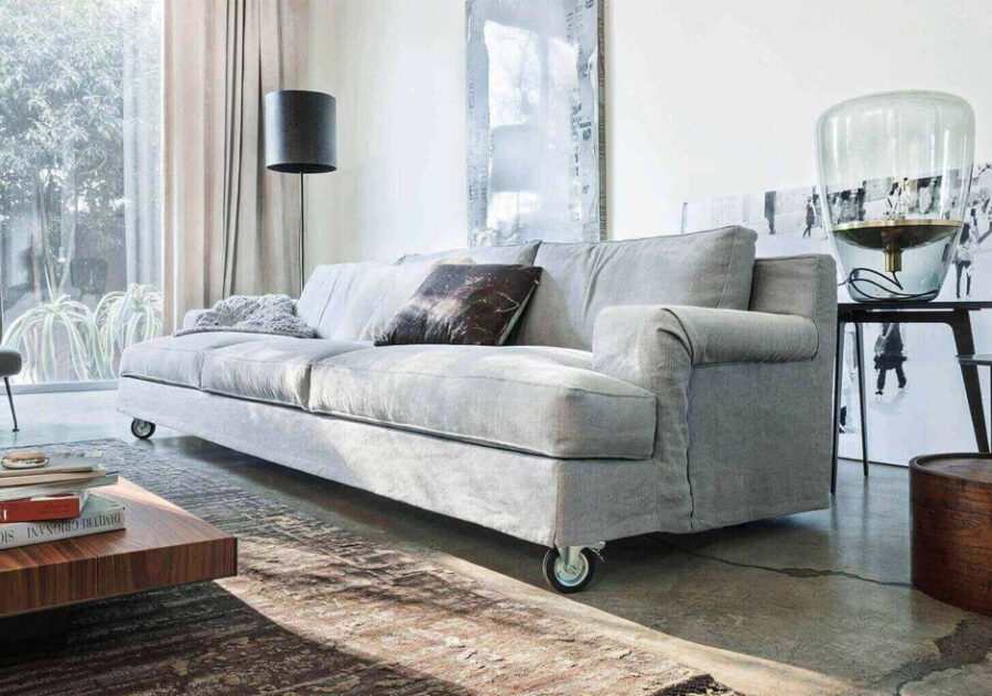 Clássico e elegante, este sofá aconchegante tem estrutura e pés de madeira em carvalho natural. O revestimento é em espuma de poliuretano de alta densidade, uma garantia de durabilidade. A capa removível de tecido tem tons básicos e atemporais disponíveis que combinam com qualquer estilo de décor. A opção dos pés dianteiros em rodinhas garante ainda mais comodidade.