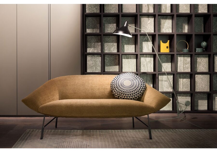 A originalidade é a primeira palavra que vem à mente para descrever o sofá Lennox, criado pelo designer Gordon Guillaumier para a marca Lema. De aparência despojada e até mesmo divertida, também é uma peça versátil que pode contrastar em uma sala de ares clássicos, por exemplo. São dois lugares em uma estrutura de metal com acabamento em bronze. O estofado deste sofá contemporâneo pode ser produzido em tecido, couro natural ou ecológico.