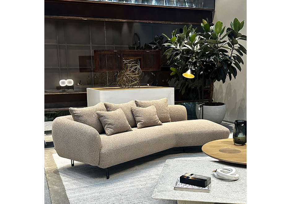 Estrutura de madeira de reflorestamento tratada com controle de umidade e MDF, revestida com um mix de espumas e percintas elásticas. Pés em aço carbono.