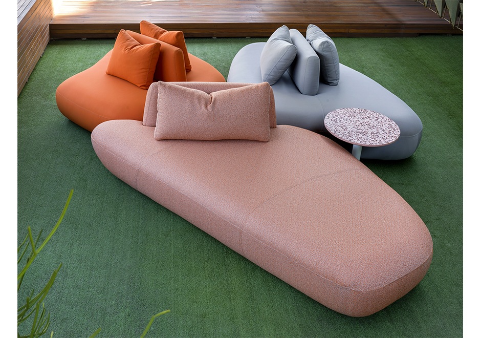 O sofá Pedras Outdoor segue a mesma linha das criações da designer Roberta Banqueri para ambientes internos. Ele também reverencia a natureza, com cinco versões em formatos orgânicos diferentes que remetem às pedras. Os materiais, no entanto, são mais adequados para áreas externas. É um sofá próprio para conferir elegância e bom gosto até mesmo aos ambientes e momentos mais descontraídos.