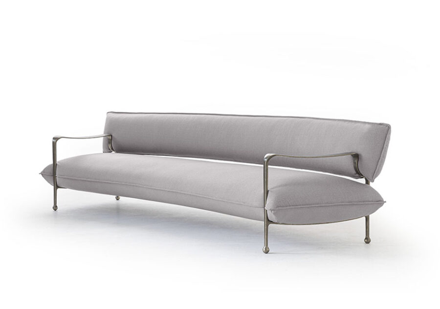 Em uma criação de linhas e volumes contrastantes, os irmãos franceses Ronan e Erwan Bouroullec deram vida ao sofá aconchegante Riace. O móvel, cujo nome faz referência a uma pequena cidade na Itália, homenageia a sua beleza e sinuosidade. O assento e o encosto são estofados e parecem flutuar sobre a estrutura fina de bronze. As várias opções de capas colaboram para que o Riace se encaixe nos mais diversos ambientes.