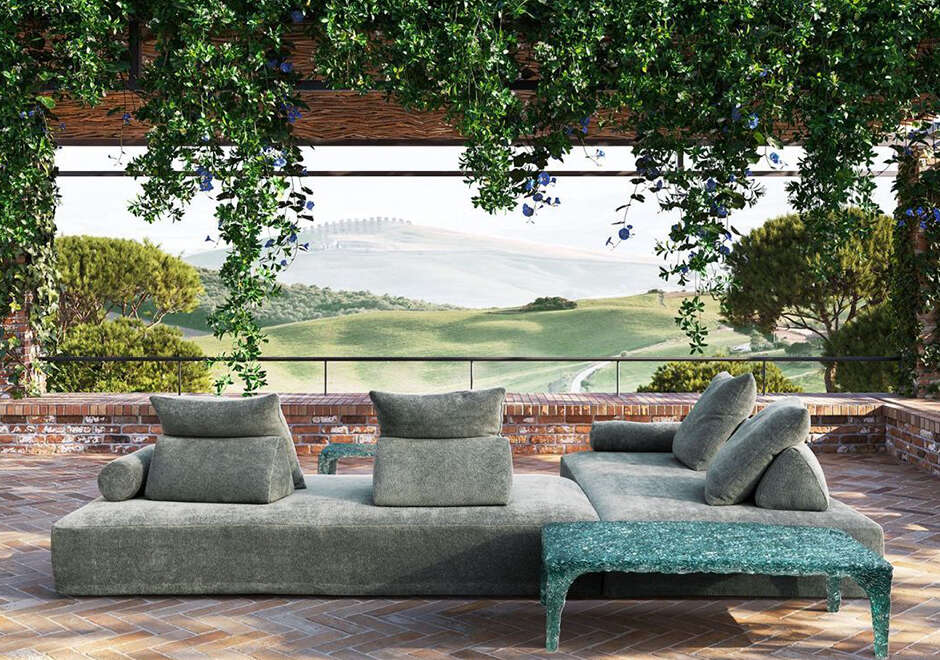 O designer Francesco Binfaré, inspirado por influências orientais, desenhou o sofá modular Sherazade para áreas externas. Projetado para oferecer o máximo de conforto, possui almofadas com diferentes espessuras e formatos, duas tailandesas piramidais para encosto, duas quadradas para apoiar as costas, além de uma retangular e uma cilíndrica para apoio dos braços. O assento, em Gellyfoam®, espuma especial da marca Edra, fornece maciez e suporte completo. A configuração do sofá Sherazade é livre e flexível, permitindo que ele seja adaptado aos desejos do momento.