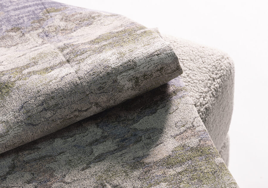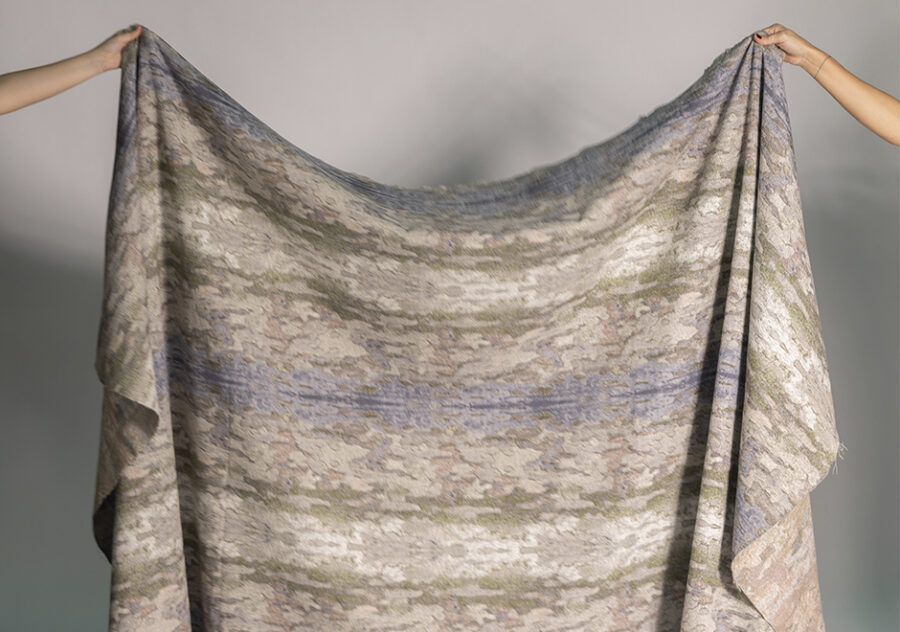 O tecido Pampas da Fio, da Coleção Biomas, evoca a tranquilidade das extensas pradarias do sul do Brasil. Com um jacquard de tingimento manual, traz uma textura rica e um efeito natural que remete à paisagem suave e contínua da região. Sua cartela de cores, em tons off-white, azuis, cinzas, verdes e terrosos, reforça a conexão com a natureza e a autenticidade da matéria-prima.